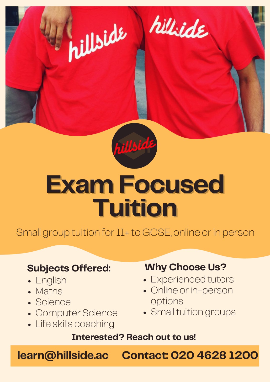Hillside is a non-profit tuition service based in Harrow. Our expert tutors provide GCSE and A Level students with a traditional method of learning. We provide small group tuition for 11+ to GCSE, online and in person.